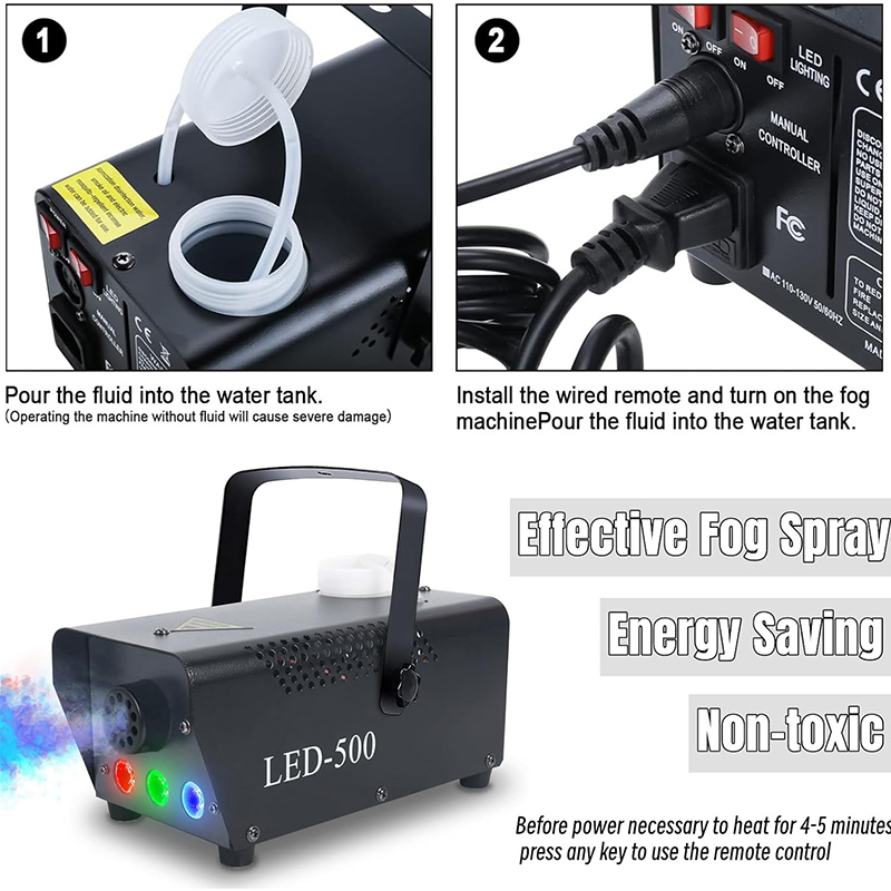 ● Agbara Nfipamọ ati Aisi-majele: Ti ni ipese pẹlu ojò 350ml fun iṣelọpọ kurukuru pipẹ. Ṣafikun omi ẹrọ kurukuru ọjọgbọn kan si ojò ati lẹhinna gbe kurukuru ti kii ṣe majele.